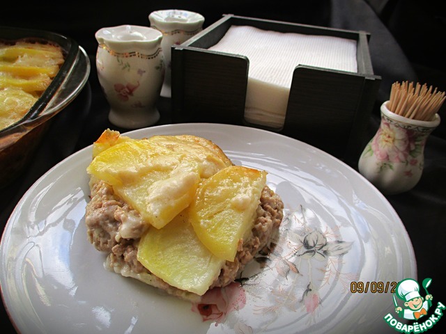 Запеканка из картофеля с мясом в соусе "Бешамель"