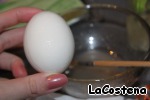 На вареное яйцо мы наносим клей. -