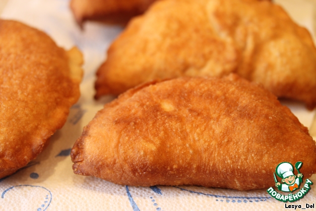 Сформировать пирожок в форме большого вареника или с помощью формочки.