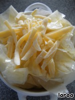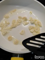 Чеснок мелко нарезать и слегка обжарить с растительным маслом. Вытащить из масла.