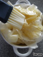 Свисающие края сложить и промазать растопленным сливочным маслом.