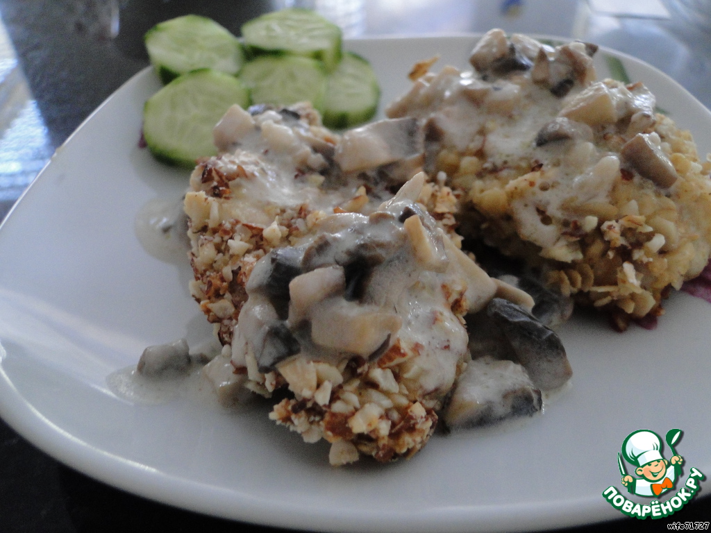 Панировка из овсяных хлопьев и миндаля прекрасно подходит к куриному мясу. А сливочно-грибной соус добавит чудесный вкус и аромат. На конкурс "Вкусно и полезно".