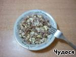 Соединить печень, яйца, лук. Посолить, поперчить, полить слегка раст. маслом.