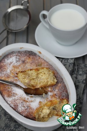 Выложите тесто в форму для запекания. Выпекайте около 35-40 минут. Перед подачей немного остудите и посыпьте сахарной пудрой.