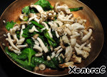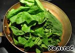 На него мясо и сверху шпинат с грибами и чеснок, нарезанный