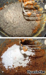 Добавляем молотые орехи (у меня лесные и миндаль 1:1),