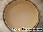 Тесто разморозить, посыпать хорошенько мукой, раскатать под вашу форму с расчетом на очень широкие бортики.