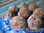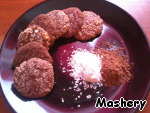 Разогрейте духовку до 160 градусов. Мокрыми руками (или в резиновых перчатках) сформируйте из холодного теста печенье в форме трюфелей (к сожалению, сколько бы я не лепила, у меня не вышли трюфели, поэтому делала шарики). Обваляйте в оставшейся кокосовой стружке (я ещё некоторую часть обваливала в растолчённом печенье и какао-порошке). Выложите на противень, застеленный вощёной бумагой на расстоянии 2-3 см друг от друга. Выпекайте 17-20 минут - печенье должно затвердеть снаружи, но остаться мягким внутри.