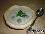 Сырный суп с грибами в съедобных тарелочках