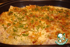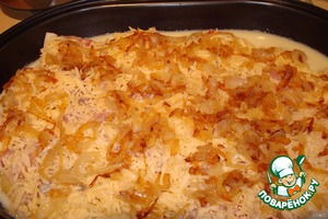 Потом раскладываем по поверхности жареный лук.