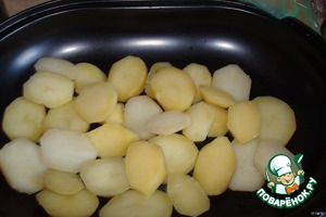 Картофель нарезаем колечками,и выкладываем на противень.