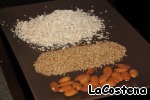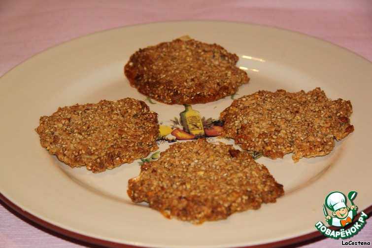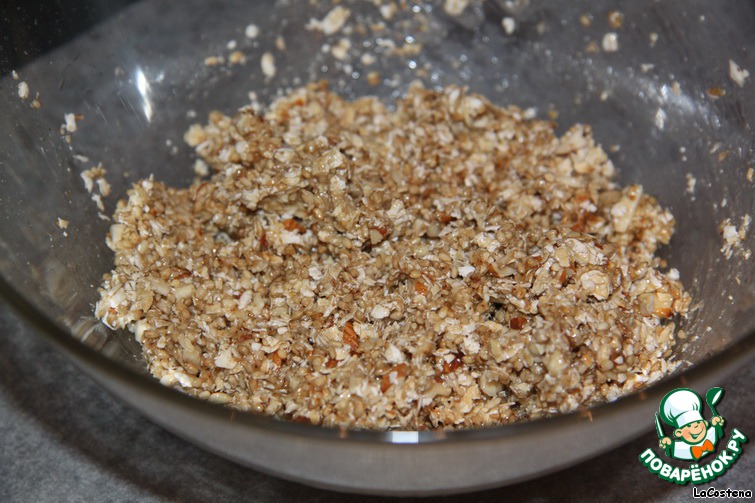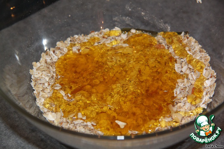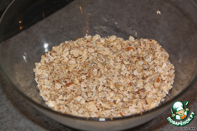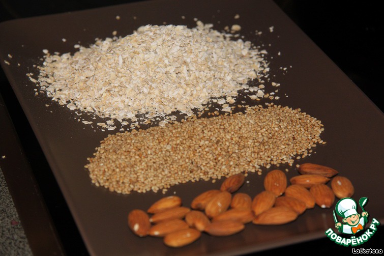 Основа нашего десерта - это овсяные хлопья, кунжут и миндаль.