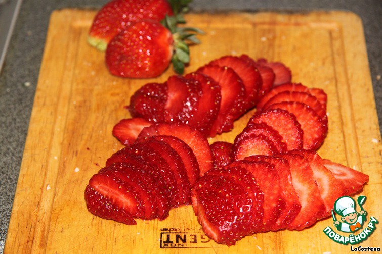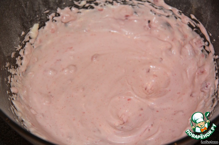 Добавить немного нарезанной клубники и взбить еще 1 минуту.
