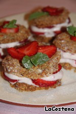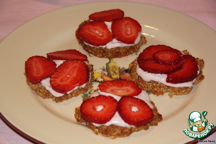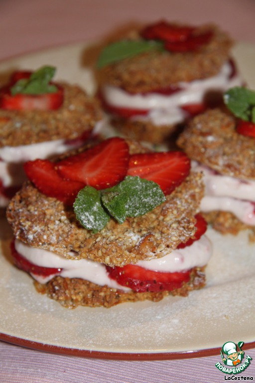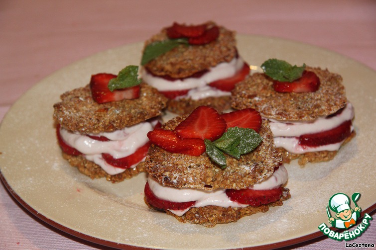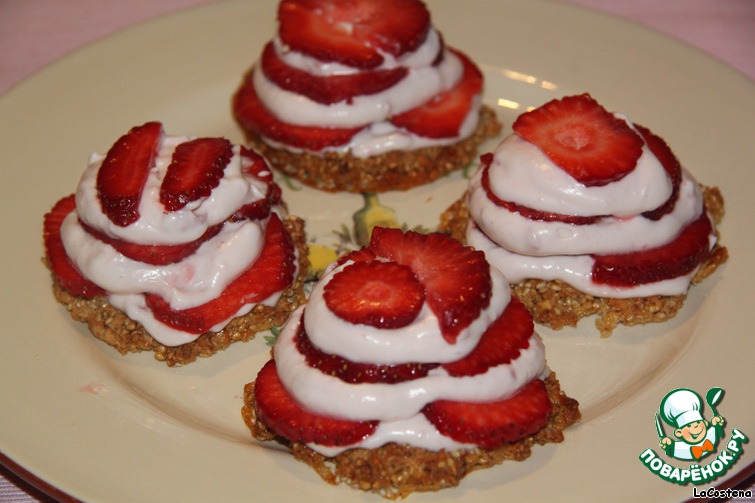 В этом десерте сочетается хрустящая основа и нежнейший крем со свежей клубникой. У него несколько плюсов: он быстро готовится, он полезный, т. к. содержит овсяные хлопья, орехи и клубнику, и очень вкусный!)))