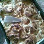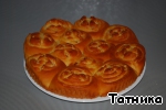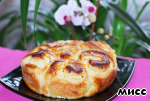 1. В большой миске растворить дрожжи в тёплой воде. Добавьте молоко, сахар, яйца, масло (растопить) - взбить миксером до однородности. Добавить 5 стаканов муки и взбить до однородности.