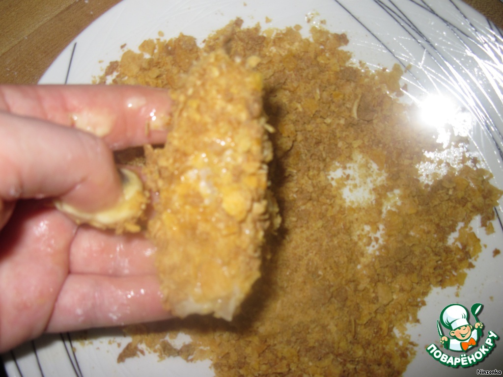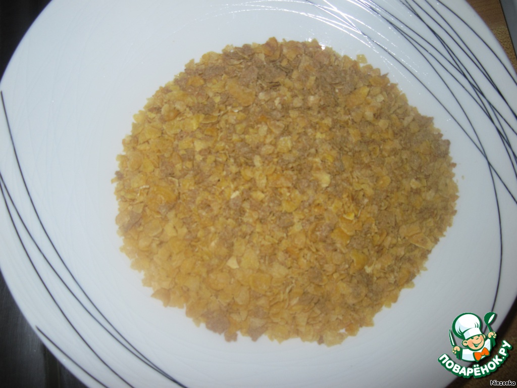 Кукурузные хлопья немного измельчить.