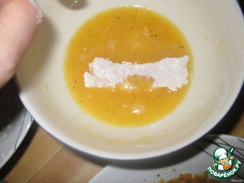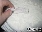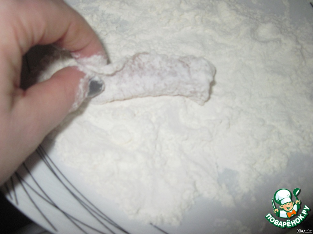 Рыбные брусочки по одному обмакнуть сначала в муку,