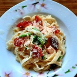Единственное отклонение от рецепта : другой вид пасты (тальятелле) и дома не оказалось моцареллы .