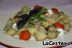 Назвала это блюдо "Морским" из-за лосося и макарон-ракушек, которые являются основной его составляющей. А томаты, спаржа, моцарелла и соус песто так тонко создают аромат морского воздуха... Эх... хочу лето!))))