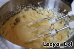 Мягкое масло взбить с сахаром до пышности, добавить по одному яйца.