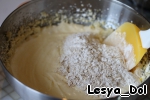 Муку, овсяные хлопья, соду, разрыхлитель. Все хорошенько размешать лопаточкой.