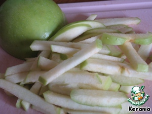 Яблоко помыть, удалить сердцевину, нарезать соломкой, сбрызнуть 1 ст. л. лимонного сока.