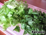 Листья салата и щавеля помыть, обсушить бумажным полотенцем, порвать руками на маленькие кусочки.