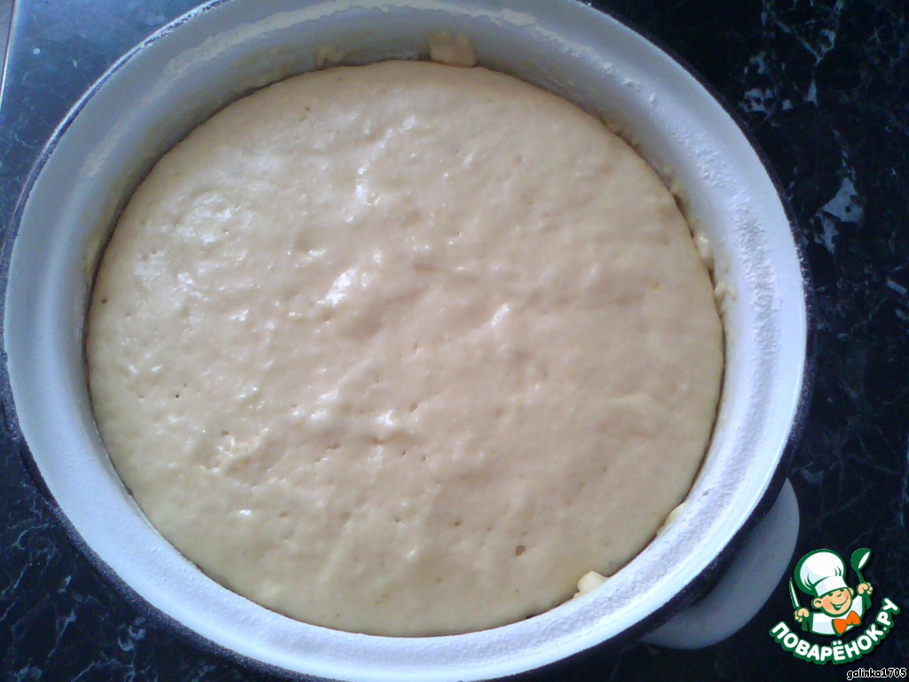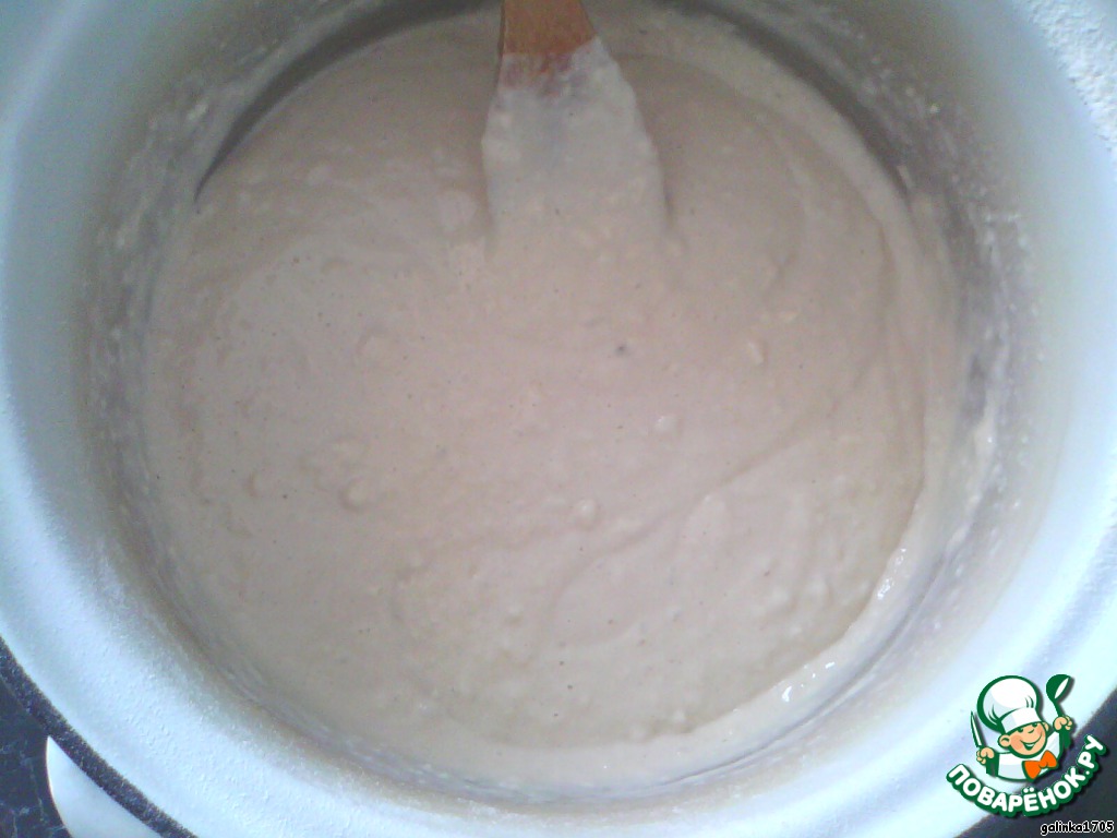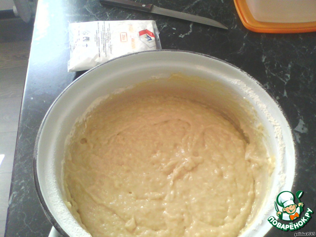 Теперь опять добавляем просеянную муку (0,5 кг) и замешиваем тесто, по густоте как на оладьи. Оставляем в теплом месте подниматься.