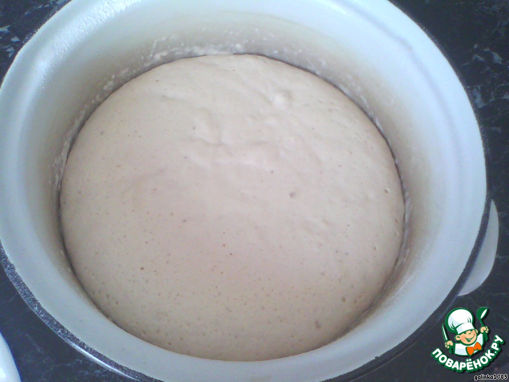 Когда тесто увеличится в объеме в два раза - можно добавлять муку и замешивать тесто. У меня в общей сложности ушло 1,5 кг муки. Тесто должно быть мягким и пластичным.
