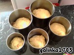 Формочки для куличей смазываем растительным маслом. Руками формируем из теста шарик и укладываем в форму. По объему тесто должно занимать 1/3 формы.