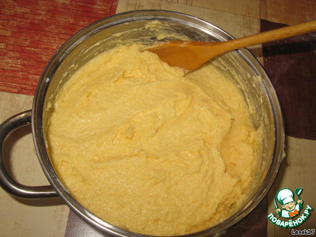 Всыпать оставшуюся муку. Тщательно вымешать.