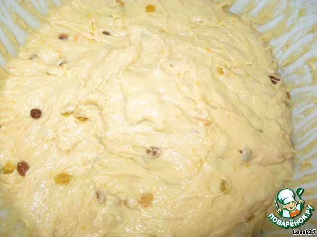 После того, как тесто подойдёт в третий раз, добавить промытый и высушенный изюм и цукаты. Я использую кожуру, натертую на терке, свежего апельсина и лимона. Апельсин можно потереть на более крупной терке.