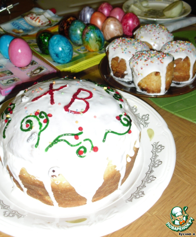У меня формочки не большие , так что данного количества продуктов мне хватило на 4 кулича.