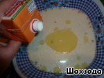 В овсяные хлопья влить заранее подогретое горячее молоко