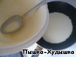 • Яйца, желтки взболтаем с половиной чашки молока.
