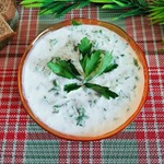 Готовила на основе кефира; из зелени - лук, петрушка и укроп.