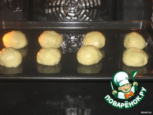 Замесить тесто из творога, муки, яиц, сахара, разрыхлителя до однородной массы. Тесто получается очень липкое. Добавить растительное масло. Сформировать булочки.