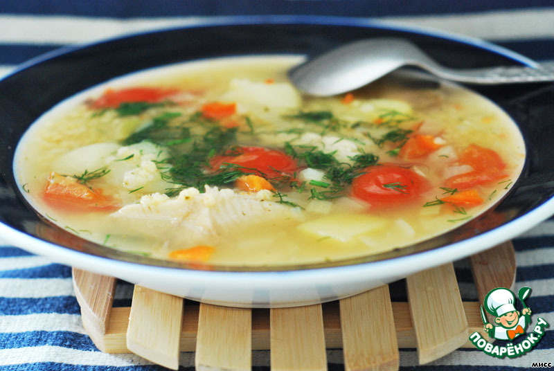 Рецепт «Cуп из сeмги с овощами и пшеном»: