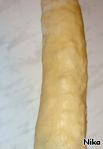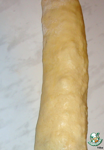 Тесто поднялось. Подсыпать 50 г муки, вымесить тесто и раскатать для рулета.