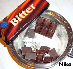 Шоколад размягчить на водяной бане. Смешать творог 200 г, 100 г шоколада, 1 яйцо, 1 ч.л. ванилина, 100 г сахарной пудры. -