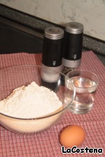 Идеальная составляющая для теста: мука, теплая вода, яйцо, соль, перец.