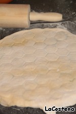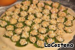 Раскатываем еще одну часть теста и выкладываем сверху на начинку.