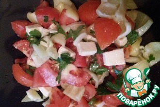 • Перемешиваем зелень и овощи, заправляем их оливковым маслом.