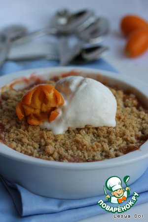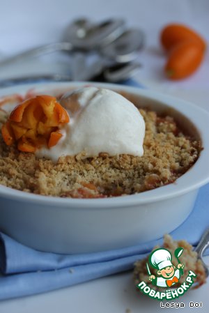 • Сверху посыпьте крошкой. Выпекайте при 180 град. минут 20-25 до румяной корочки. Выньте из духовки, немного остудите и подавайте в теплом виде с шариком мороженого или взбитыми сливками.