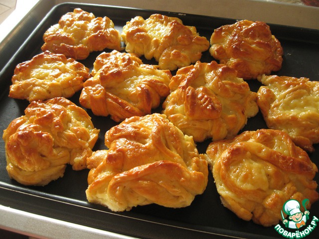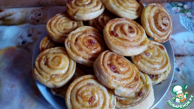 - Тесто дрожжевое (Можно брать сдобное или слоеное дрожжевое) — 500 г