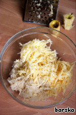 Очистить и натереть на крупной тёрке 2 яблока, смешать с капустой. -