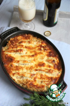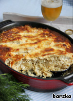 Вы бывали когда-нибудь на курорте Баден-Баден? Нет? Я тоже - не бывала, но вот запеканочка из тех мест меня соблЯзнила... и не зря! Очень советую любителям рыбки и тем, у кого в загашнике осталась квашеная капуста: ну какой же курорт без полезностей?... да и без приятного впечатления от блюда не обойтись...