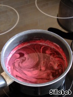 Теперь готовим маринад. В небольшую кастрюлю или сотейник выливаем сок свеклы, уксус, добавляем сахар и специи. Доводим до кипения. Снимаем.