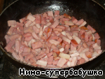 Бекон нарезать и обжарить. Выложить в миску и отложить.
