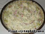 Сверху равномерно выложить оставшуюся заливку. Можно еще посыпать 1 ст. л. пармезана, натертого на мелкой терке.